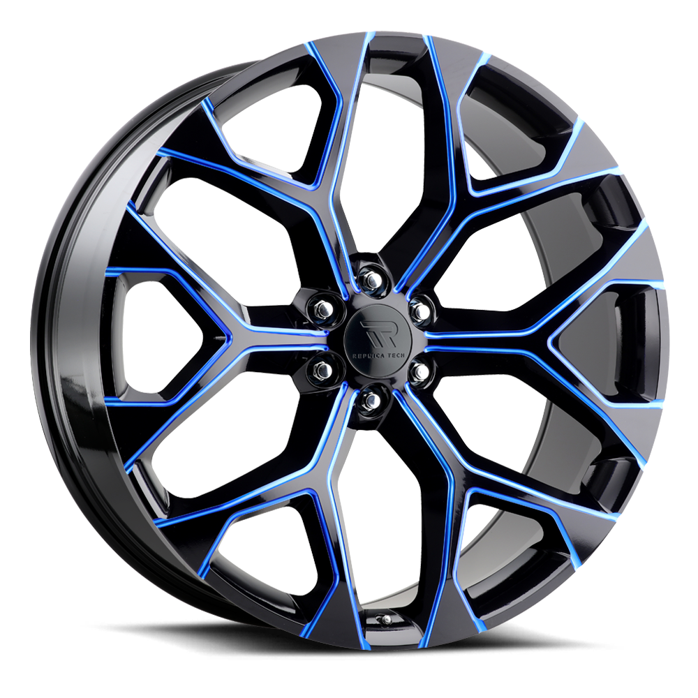 | RT8-2290XX24PBBX-I | Glossy Black / Blue Mill Machined | 22x9 | 6x139.7 | 24 | 87 | 2200 | 50 |