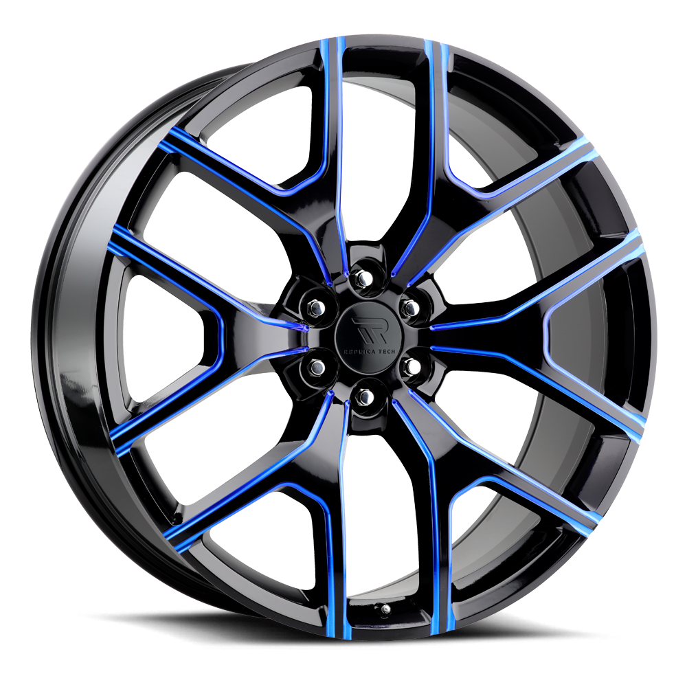 | RT6-2085XX24RBBX-I | Glossy Black / Blue Mill Machined | 20x8.50 | 6x139.7 | 24 | 106.1 | 2200 | 36 |